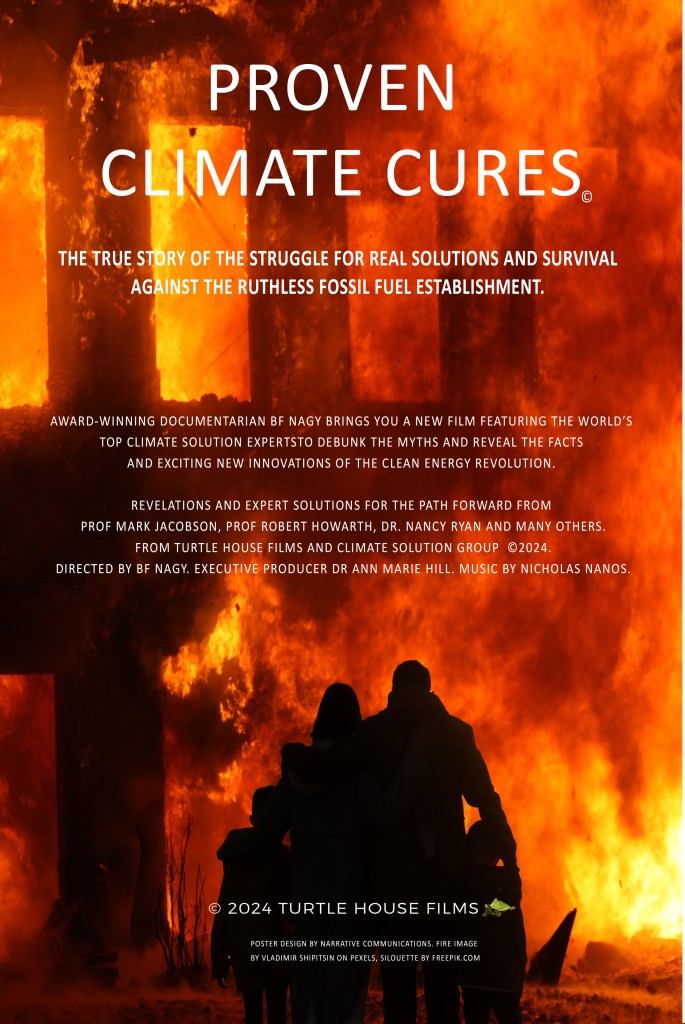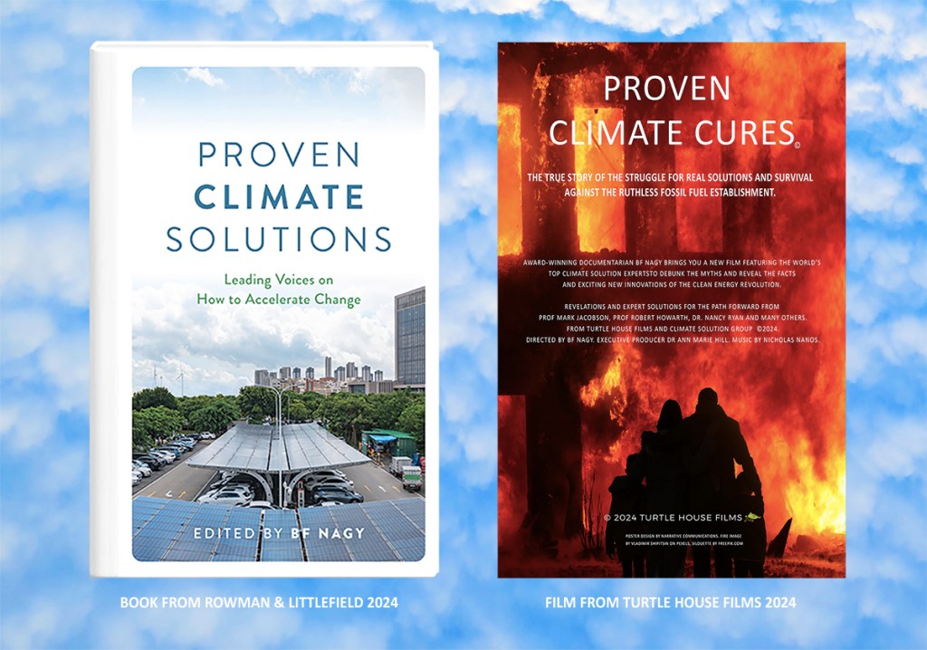Proven Climate Cures, will also be released during 2024. It will feature many of the climate thought leaders from the book. Award-winning documentarian BF Nagy reveals the corporate profiteering and disinformation that threaten our families and livelihoods, and provides real solutions and a better path forward. No one should have to watch their home burn down, their crops fail or flood, or their business go bankrupt due to supply chain breakdown, stranded and destroyed assets, and zooming insurance costs.