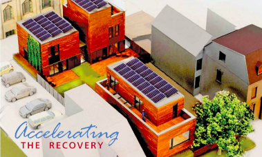Post-Katrina Brad Pitt houses, LEED Platinum, HERS scale 13, green building economics, Unico VRF high velocity small duct systems, solar PV, envelope, green roof, low flow plumbing, PHVAC April 2013, p12.